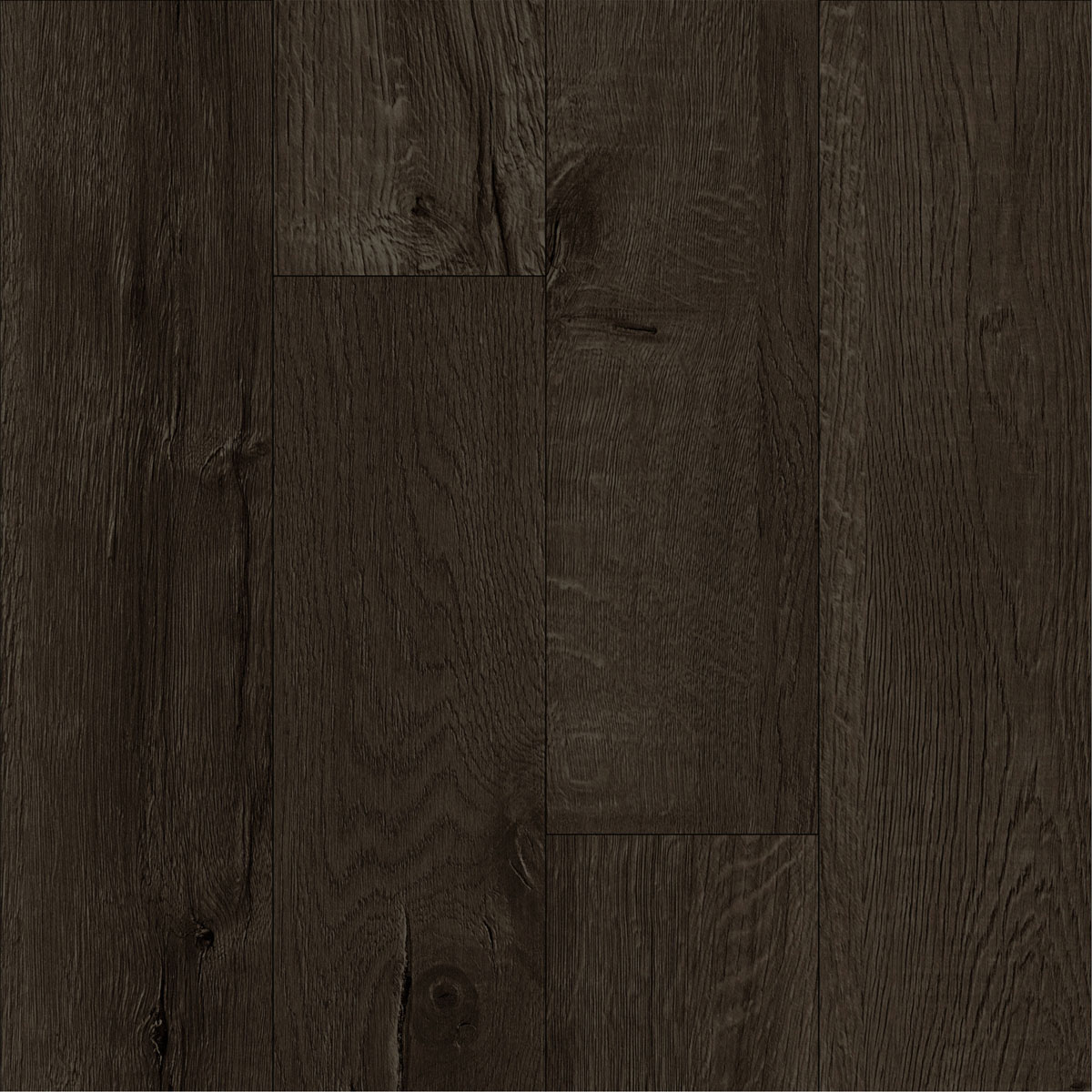 Такой рисунок дуба на полу с фаской подходит для просторных помещений: например, для кухни-гостиной в загородном доме. Кварцевый ламинат обладает повышенной прочностью и не боится воды, поэтому его можно уложить сразу во всём доме — максимальная площадь беспороговой укладки достигает 196 кв.м.